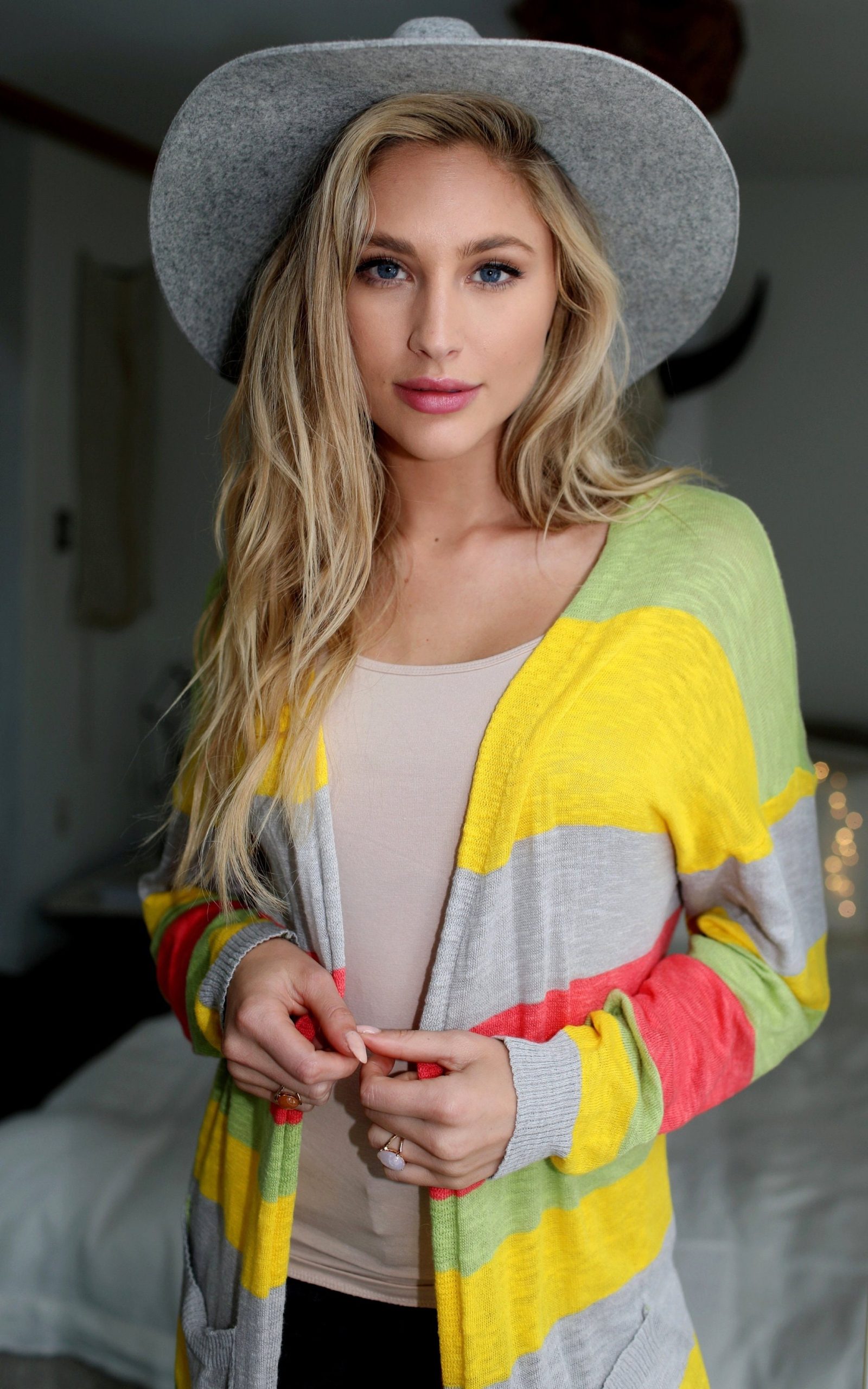 Lightweighted open-front cardigan in a vibrant, pop colored stripes.
